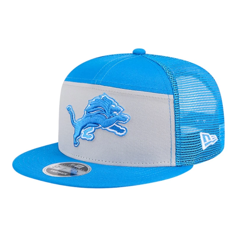 New Era Split Panel Snapback HatThe 9FIFTY Split Panel has the traditional structured 9FIFTY crown, but with a split construction creating a tri-panel shape at the front.The Detroit Lions Blue and Grey Mesh Back Outdoor New Era 9FIFTY Split Panel Snapback Hat is designed for a perfect fit and all-day wear. This hat features premium materials that feel great from the moment you put it on. Elevate your hat game and feel great every time you wear it.