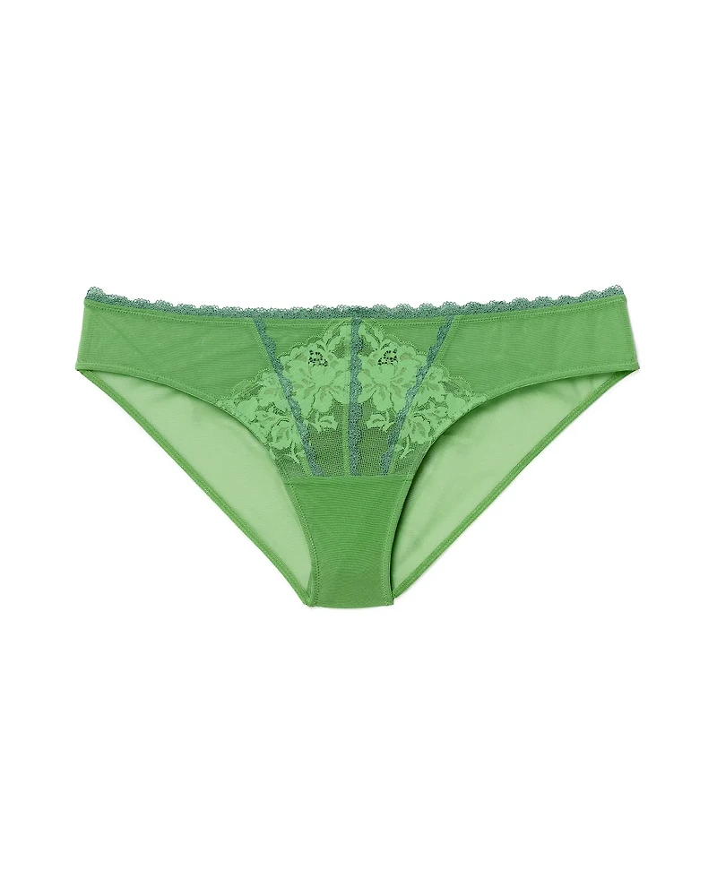 The Devina Bikini Medium Green lace bikini is a romantic-fashion statement piece. Designed in a classic bikini silhouette, it brings a flirty touch to your top drawer. - Style: Bikini Panty. (Available in sizes M-4X.)