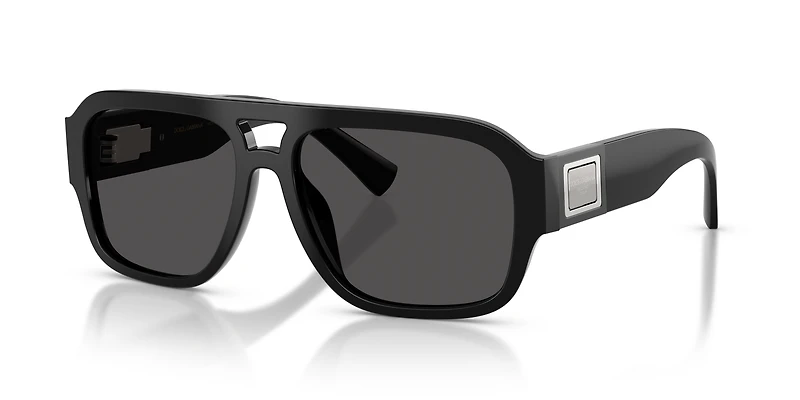 Elevate your eyewear game with the Dolce&Gabbana DG4506 black sunglasses. The pilot-shaped frames feature a timeless teardrop design and a double bridge, crafted entirely from acetate for a premium feel. Inspired by a best-selling design, their bold temples are adorned with the iconic metal logo plaque that doubles as a unique hinge. Finished with classic grey lenses and a sleek black frame front, these Dolce&Gabbana sunglasses perfectly blend functionality and effortless style.