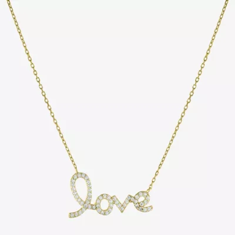 Diamonart "Love" Womens Cubic Zirconia 14K Gold Over Silver 16 Inch Pendant Necklace