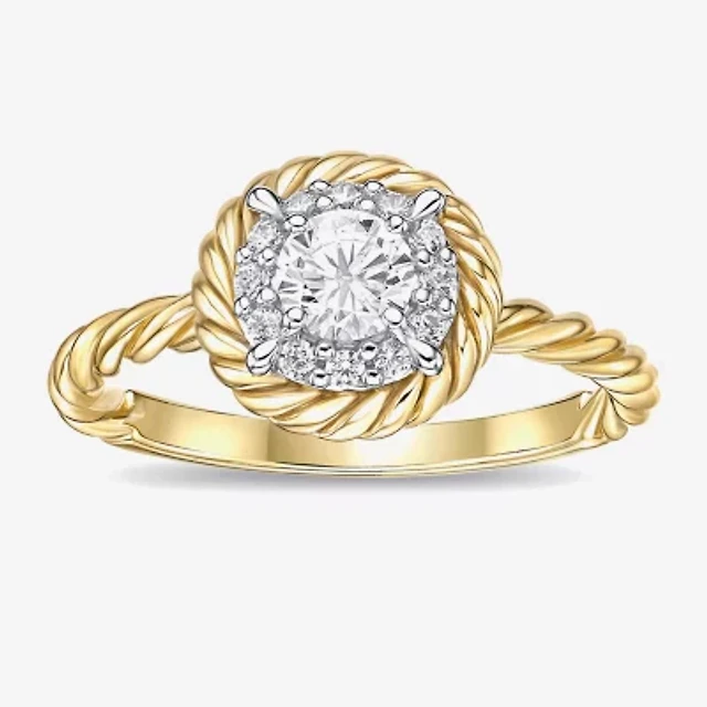 Diamonart Womens Cubic Zirconia 14K Gold Over Silver Round Halo Engagement Ring