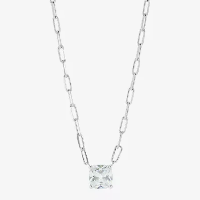 Diamonart Womens Lab Created White Cubic Zirconia Sterling Silver Cushion 18 Inch Pendant Necklace