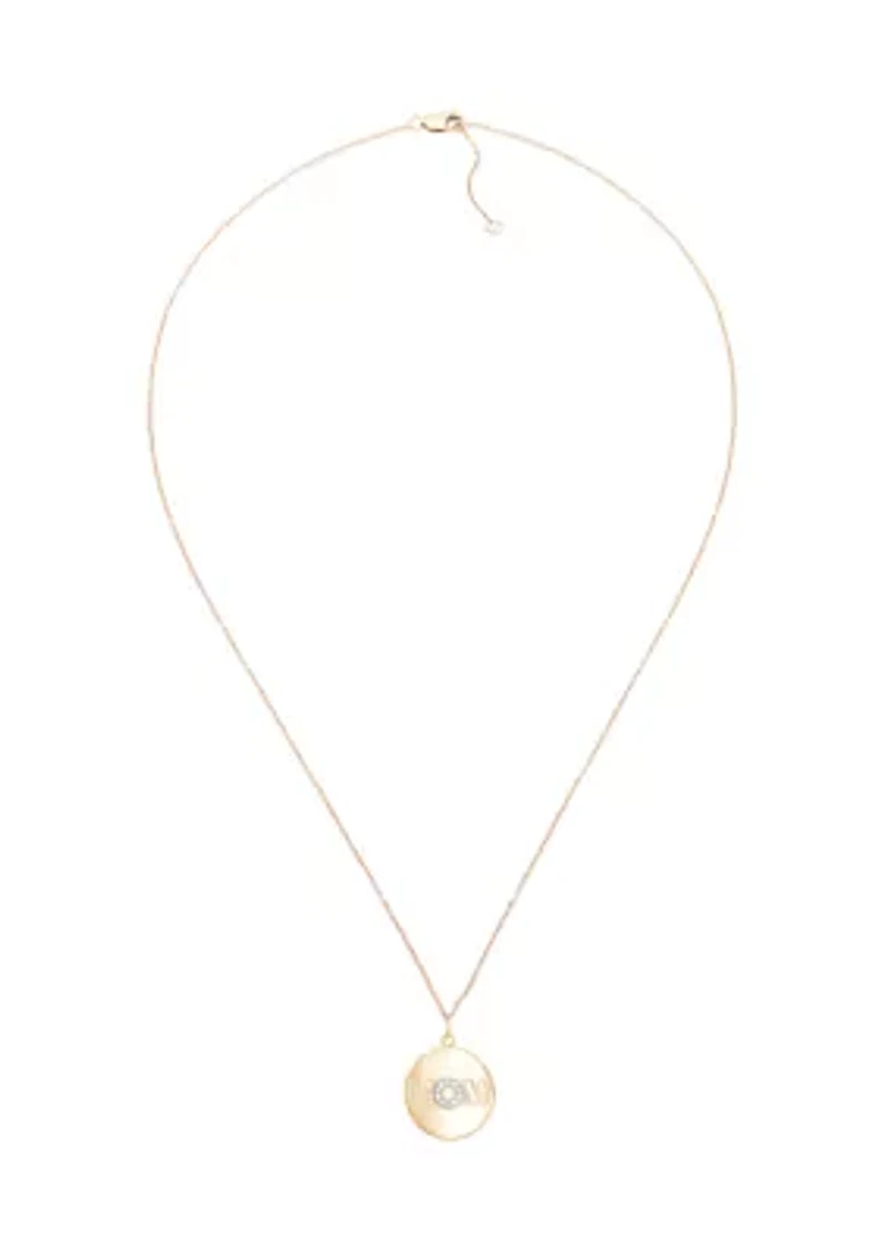 Diamond Accent Disk Pendant with 18" Cable Chain in 10K Yellow Gold