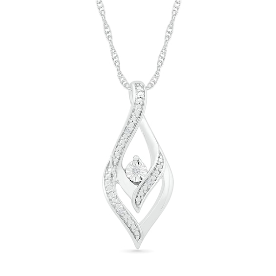 .925 Sterling Silver Pave-Set Diamond Accent Double Curve 18" Pendant Necklace