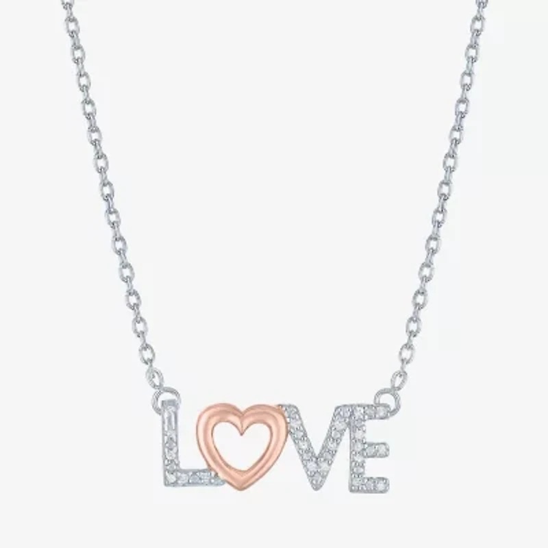 Diamond Accent "Love" Womens Diamond Accent Natural Diamond 14K Rose Gold Over Silver Sterling Silver 18 Inch Pendant Necklace