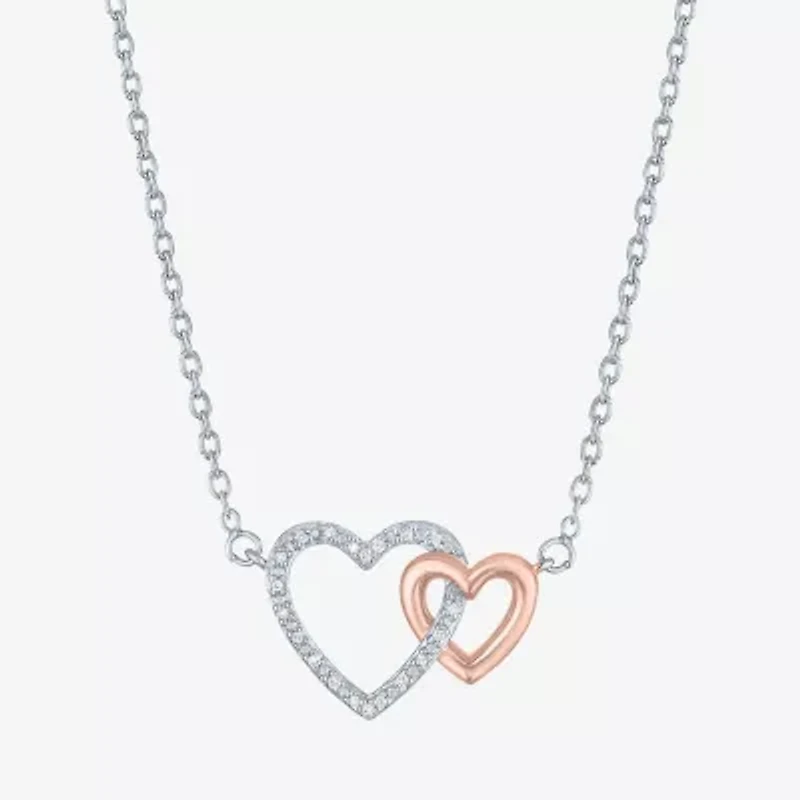 Diamond Accent "Love" Womens Diamond Accent Natural White Diamond 10K Rose Gold Over Silver Sterling Silver Heart 18 Inch Pendant Necklace