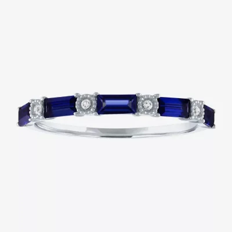 Diamond Accented 10K Gold Wedding Band with Lab Created Emerald, Sapphire, or Ruby