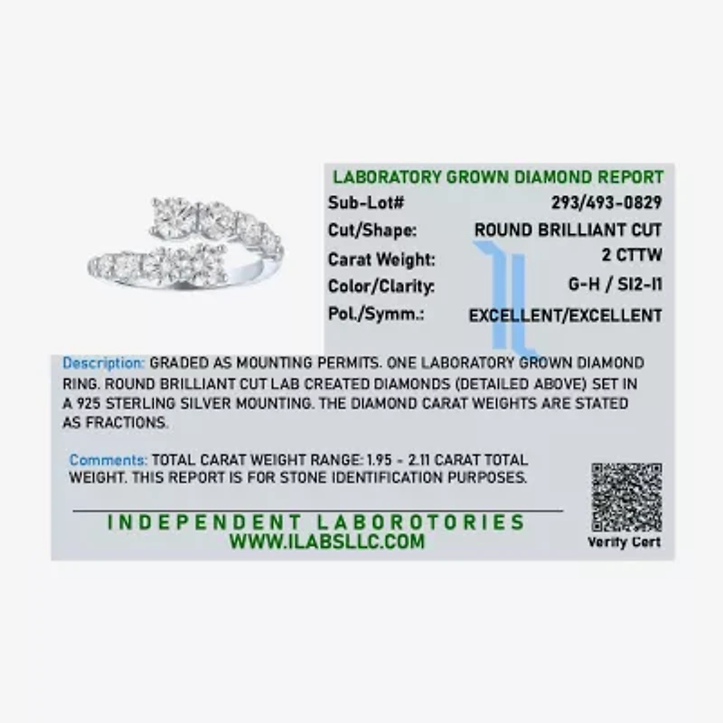 Diamond Addiction (G-H / Si2-I1) Womens 2 CT. T.W. Lab Grown White Sterling Silver Bypass Cocktail Ring