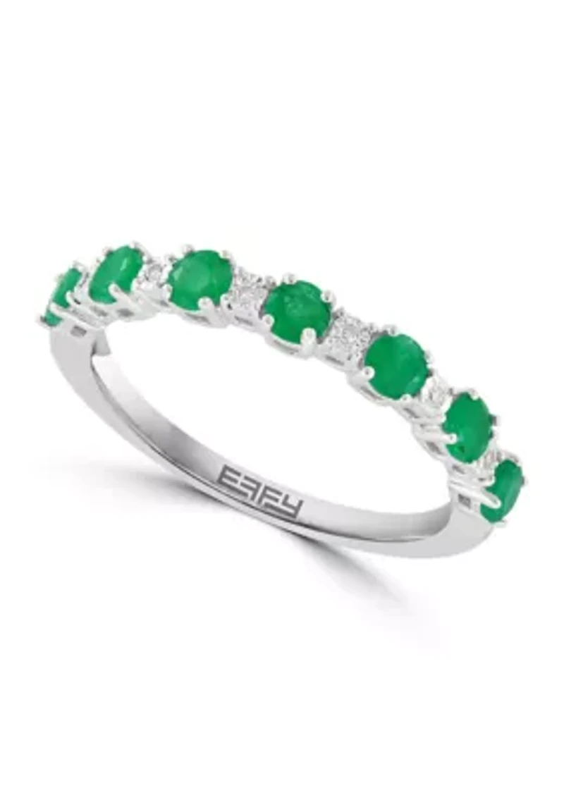 This elegant ring from Effy® enhances any outfit with its delicate design, offering subtle sophistication that's perfect for all occasions. 6 Diamonds 7 Emeralds Color rating: I, J Clarity rating: I1-I2 Polished finish Prong setting Warranty available, limited liability warranty, lifetime Imported Product Specifications 0.90" x 0.11" x 0.07" 0.02 ct. t.w. Diamonds Material & Care Sterling silver Clean with a soft cloth