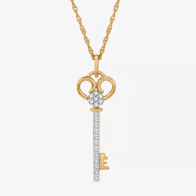 Diamond Blossom 1/10 CT.T.W. Natural Diamond 14K Yellow Gold Over Sterling SIlver Pendant Key Necklace