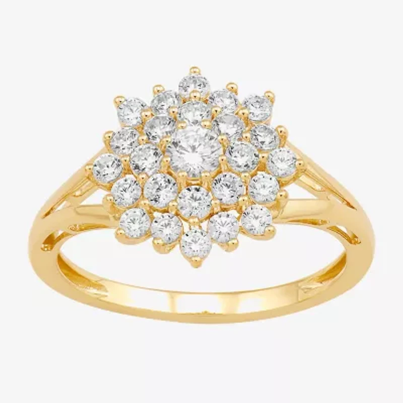 Diamond Blossom Sunburst Womens 3/4 CT. T.W. Lab Grown White 10K Gold Cluster Halo Cocktail Ring