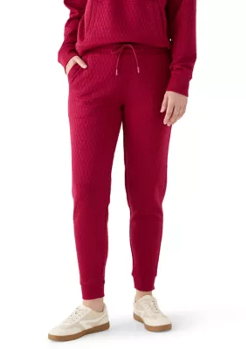 Keep it comfy with these diamond-quilted joggers from Yogalicious. Drawstring elastic waistband Unlined Regular fit Imported Product Specifications Ankle length 29" Inseam Material & Care Polyester, rayon, spandex Machine washable