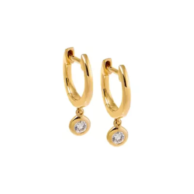 Diamond Solitaire Bezel Dangling Huggie Earring 14KDiamond Solitaire Bezel Dangling Huggie Earring 14K