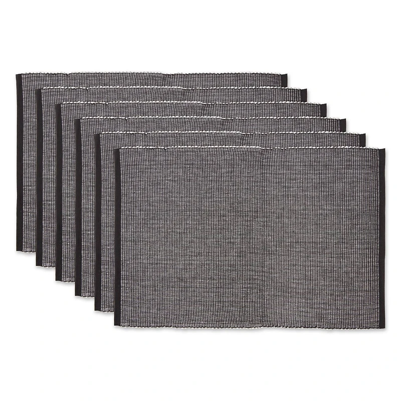 These rectangular placemats measure 13" x 19" and are made of five ply cotton. A staple for every kitchen, these are easy to care for, simply throw in the wash to clean and lay flat to dry. With a large variety of color options these can be mixed and matched and swapped out depending on the season. These solid ribbed mats are a great basic to dress up into a formal meal or for something casual, easily adds texture and interest to any table.Details:Available in multiple colors13" x 19"6 placematsFive ply cotton