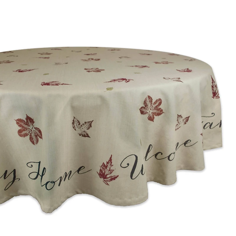 Details:Rustic Leaves print design70" diameterFor use on round table that seats 4 to 6 peopleCottonMachine wash in cold water separately, gentle cycle, line dry to avoid any shrinkageLow iron if needed