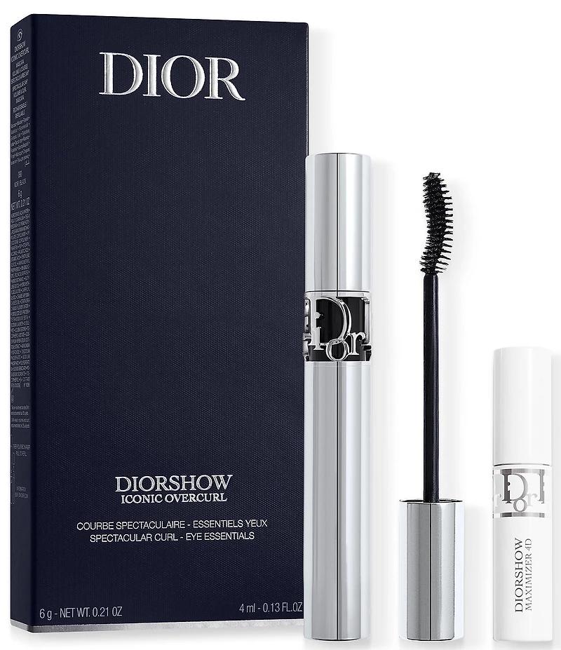 Create a bold eye makeup look with this must-have set featuring Diorshow Iconic Overcurl mascara and Maximizer 4D primer-serum, for lashes with spectacular volume and curl. Set Includes: Diorshow Iconic Overcurl Mascara in 090 Black, 0.21-oz. Mini Diorshow Maximizer 4D Lash Primer Serum, 0.13-oz. What It Does: Diorshow Iconic Overcurl is a long-wearing mascara that fans and lengthens lashes and coats them in vibrant color. Enriched with cornflower floral water, the formula is comfortable on eyes and helps strengthen lashes, for spectacular volume and curl that lasts 24-hours. Diorshow Maximizer 4D lash primer-serum works in 4 dimensions: volume, curl, length and definition, for lashes that appear oversized, immediately and for 24-hours. The floral extract-infused formula helps improve the appearance of lashes day after day, leaving them looking revitalized. How to Use: Prime your lashes with Diorshow Maximizer 4D lash primer-serum Apply Diorshow Iconic Overcurl mascara for an immediate volume and curl effect for 24-hours