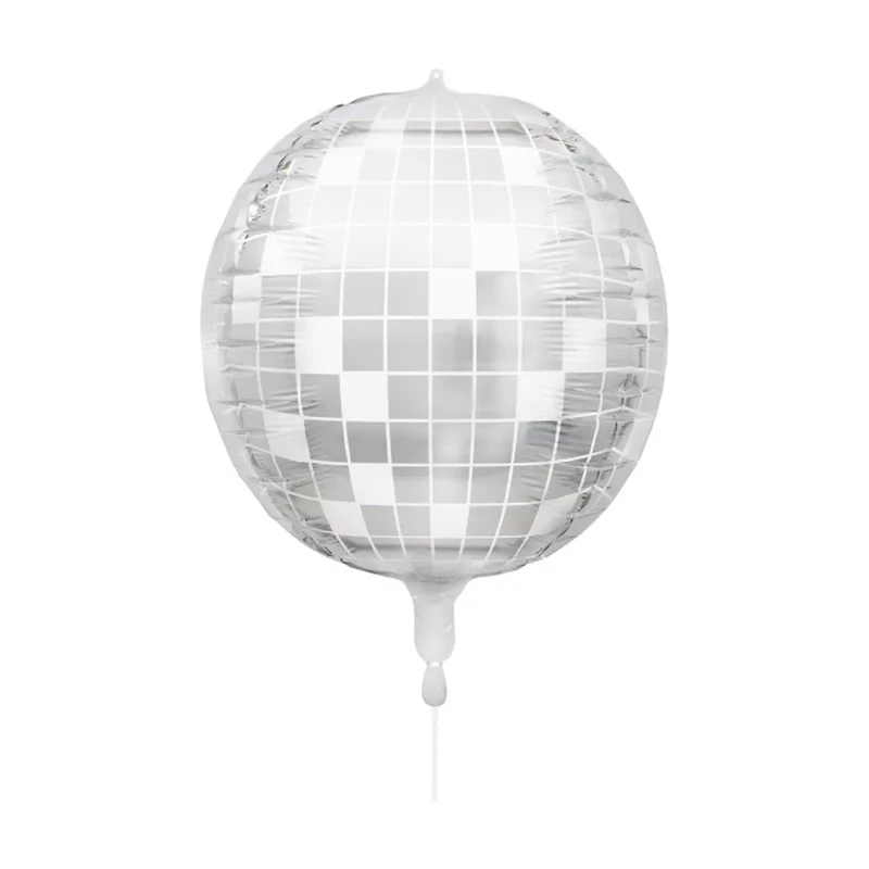 Measuring an impressive 18 inches in diameter, the Disco Ball Balloon features a striking design of reflective silver squares that mimic the iconic look of a disco ball. Its shiny, metallic finish catches the light beautifully, adding a touch of sparkle and shine to any setting. Whether you're hosting a dance party, a retro-themed event, or simply want to add some fun to your decorations, this balloon is sure to be a hit.