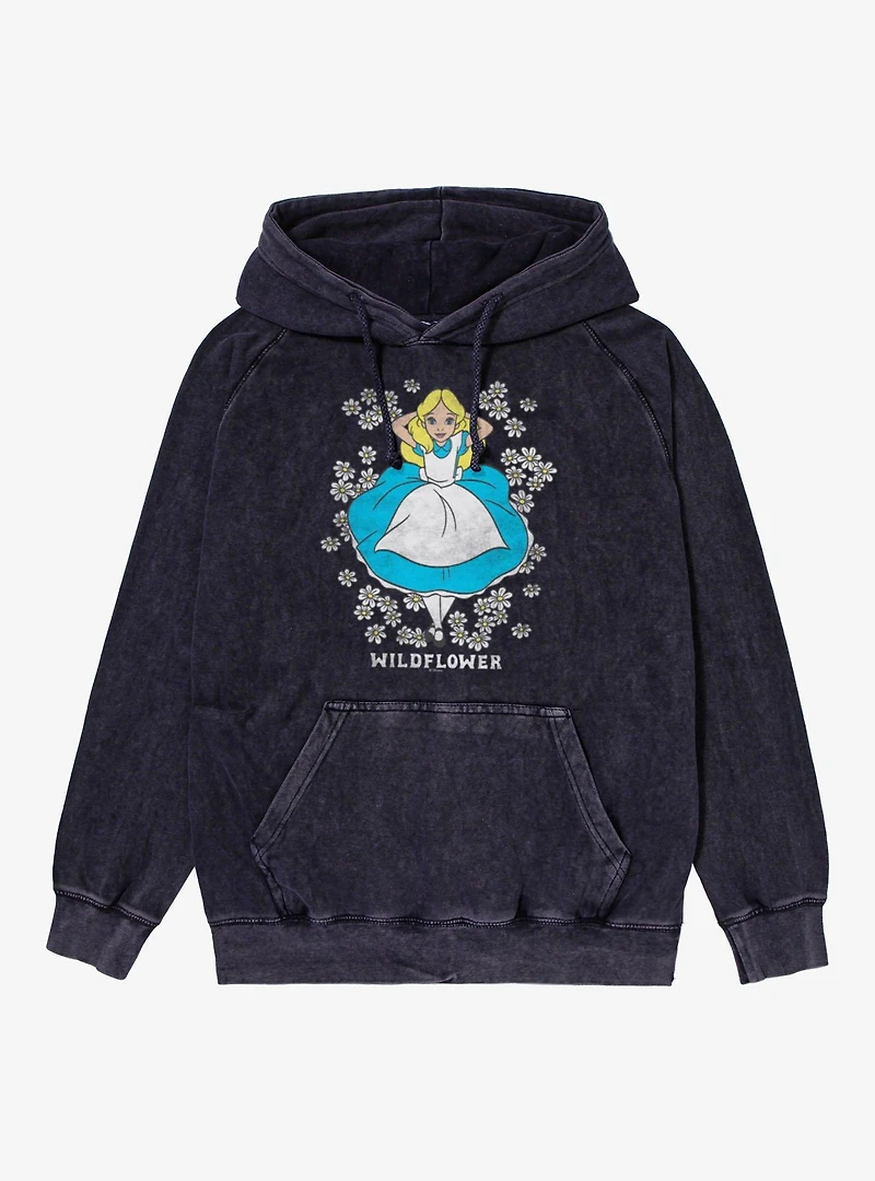 Disney Alice Wonderland Wildflower Bed Mineral Wash Hoodie