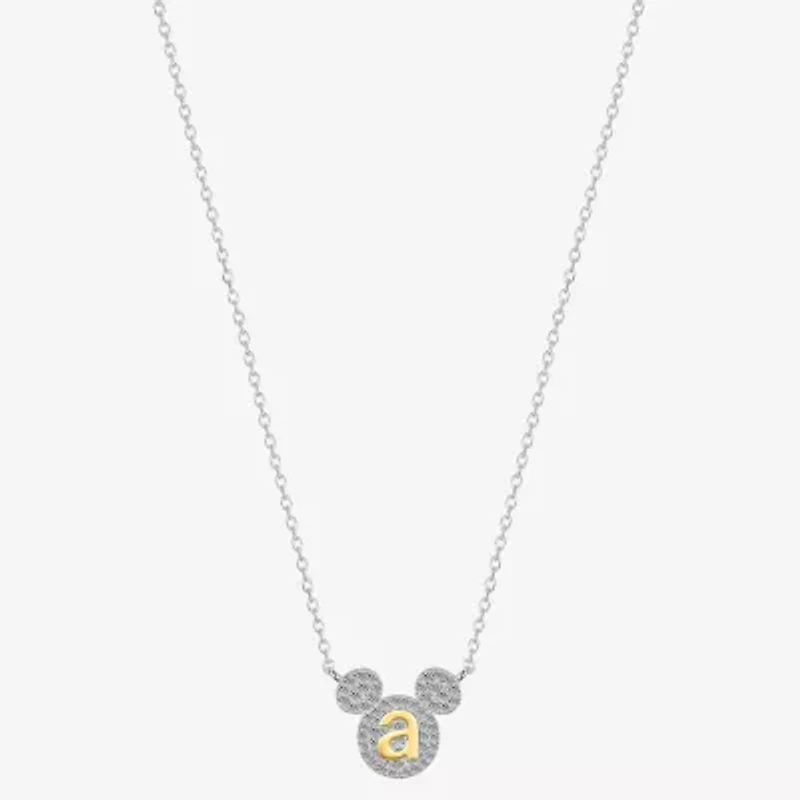 Disney Classics Initial Womens Cubic Zirconia 14K Gold Over Brass Pure Silver 16 Inch Pendant NecklaceDisney Classics Initial Womens Cubic Zirconia 14K Gold Over Brass Pure Silver 16 Inch Pendant Necklace