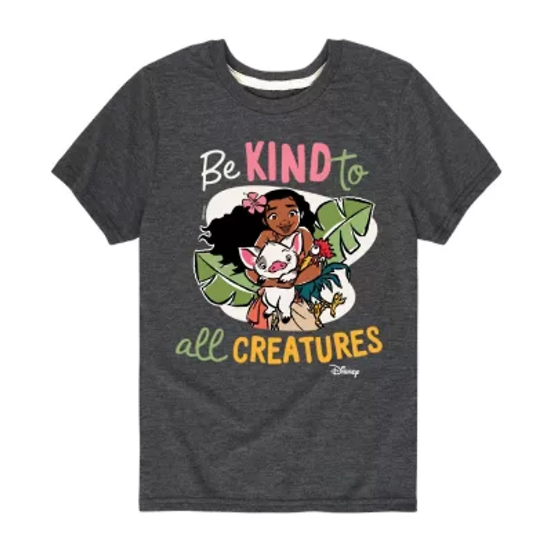 Disney Collection Little & Big Kid Girls Crew Neck Short Sleeve Regular Fit Princess Moana Graphic T-Shirt