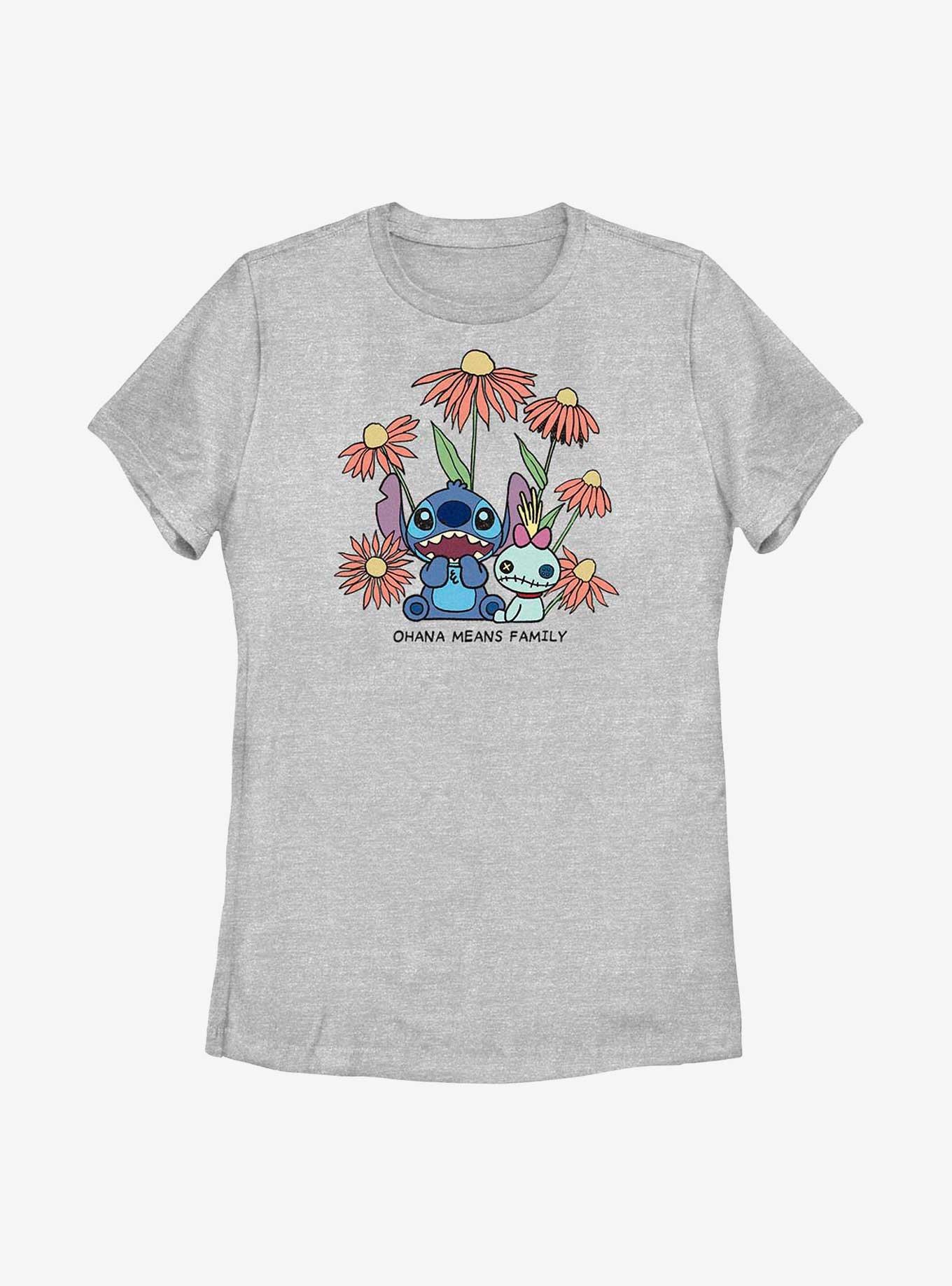 Disney Lilo & Stitch Chibi Floral Ohana Means Family Womens T-Shirt in Chattanooga, TN
