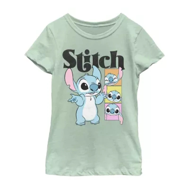 Disney Little & Big Kid Girls Crew Neck Short Sleeve Regular Fit Lilo Stitch Graphic T-Shirt