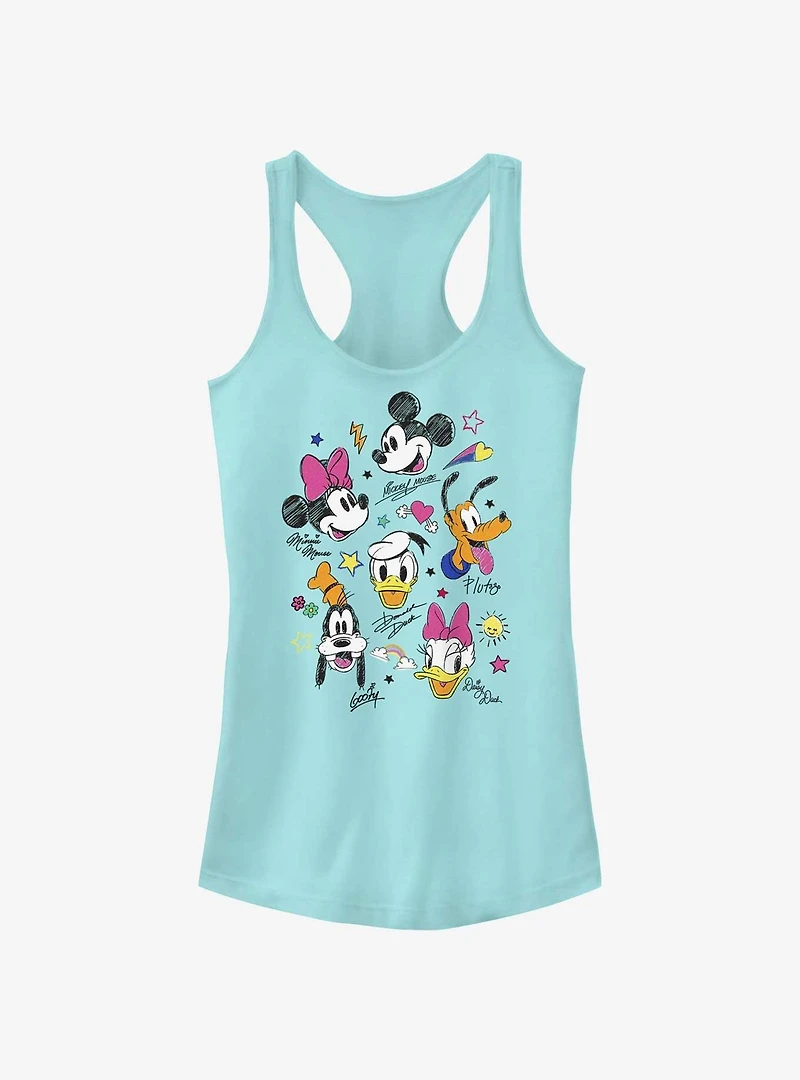 Disney doodles for days! This racerback tank features colorful sketches of all your faves: Mickey, Minnie, Pluto, Donald, Goofy and Daisy.