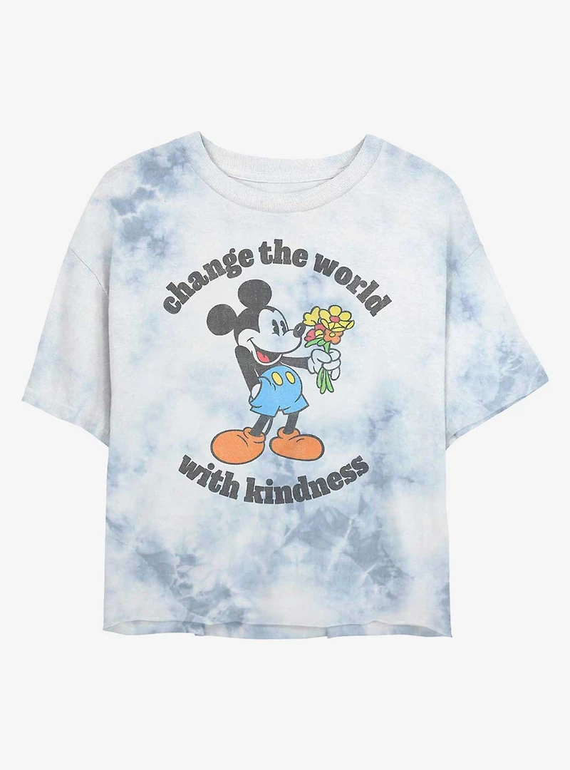 Disney Mickey Mouse Kindness Womens Tie-Dye Crop T-Shirt