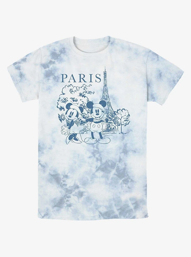 Disney Mickey Mouse & Minnie Drawing Paris Tie-Dye T-Shirt