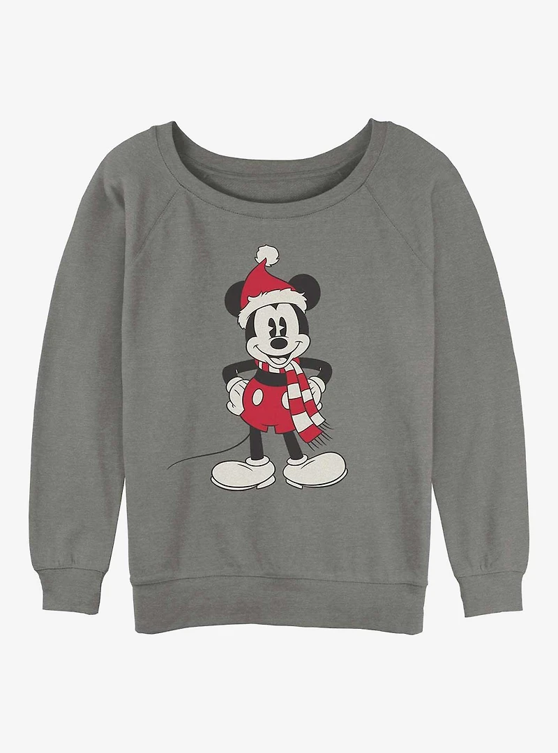 Disney Mickey Mouse Santa Hat Womens Slouchy Sweatshirt
