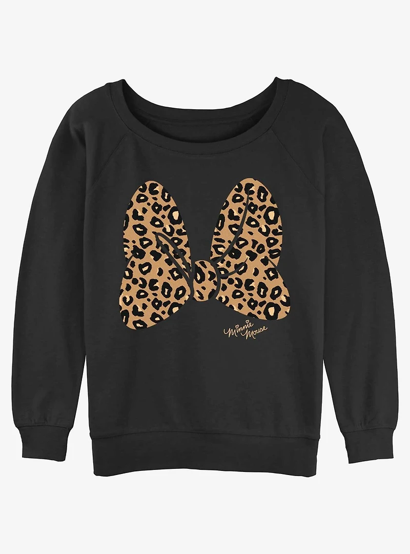 Disney Minnie Mouse Animal Print Bow Womens Slouchy Sweatshirt