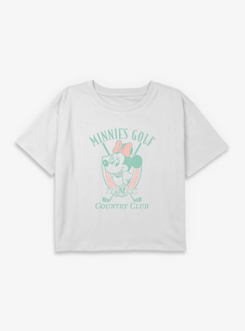 Disney Minnie Mouse Minnie's Golf Club Youth Girls Boxy Crop T-Shirt