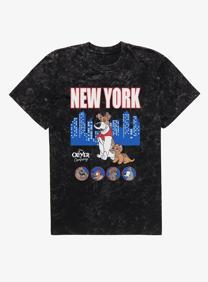 Disney Oliver & Company New York Skyline Characters Mineral Wash T-ShirtDisney Oliver & Company New York Skyline Characters Mineral Wash T-Shirt