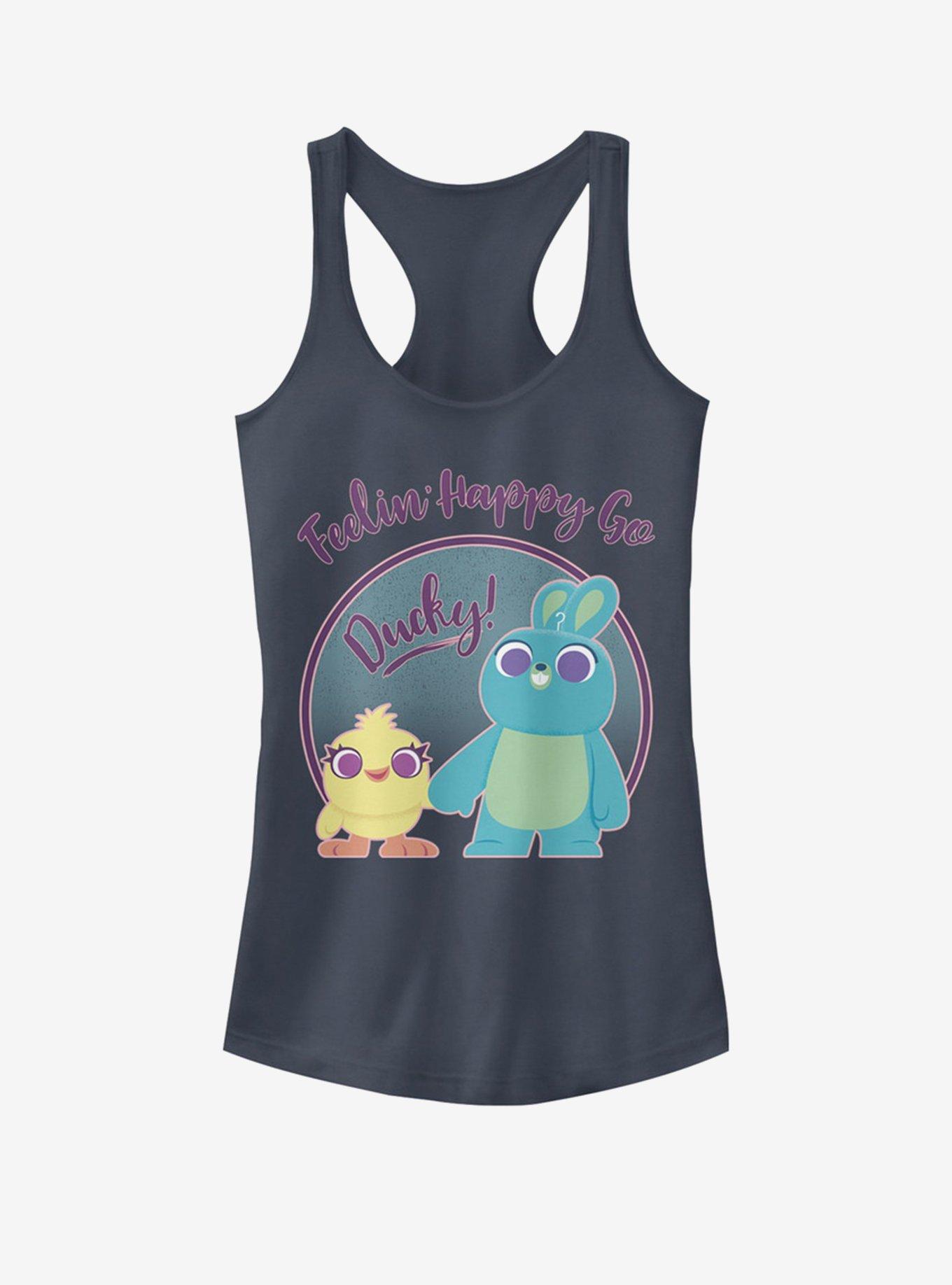 Feelin' happy go lucky? Sorta, but more like feelin' happy go DUCKY! This indigo blue tank features Ducky and Bunny from Toy Story 4 lookin' perfect in pastel.
