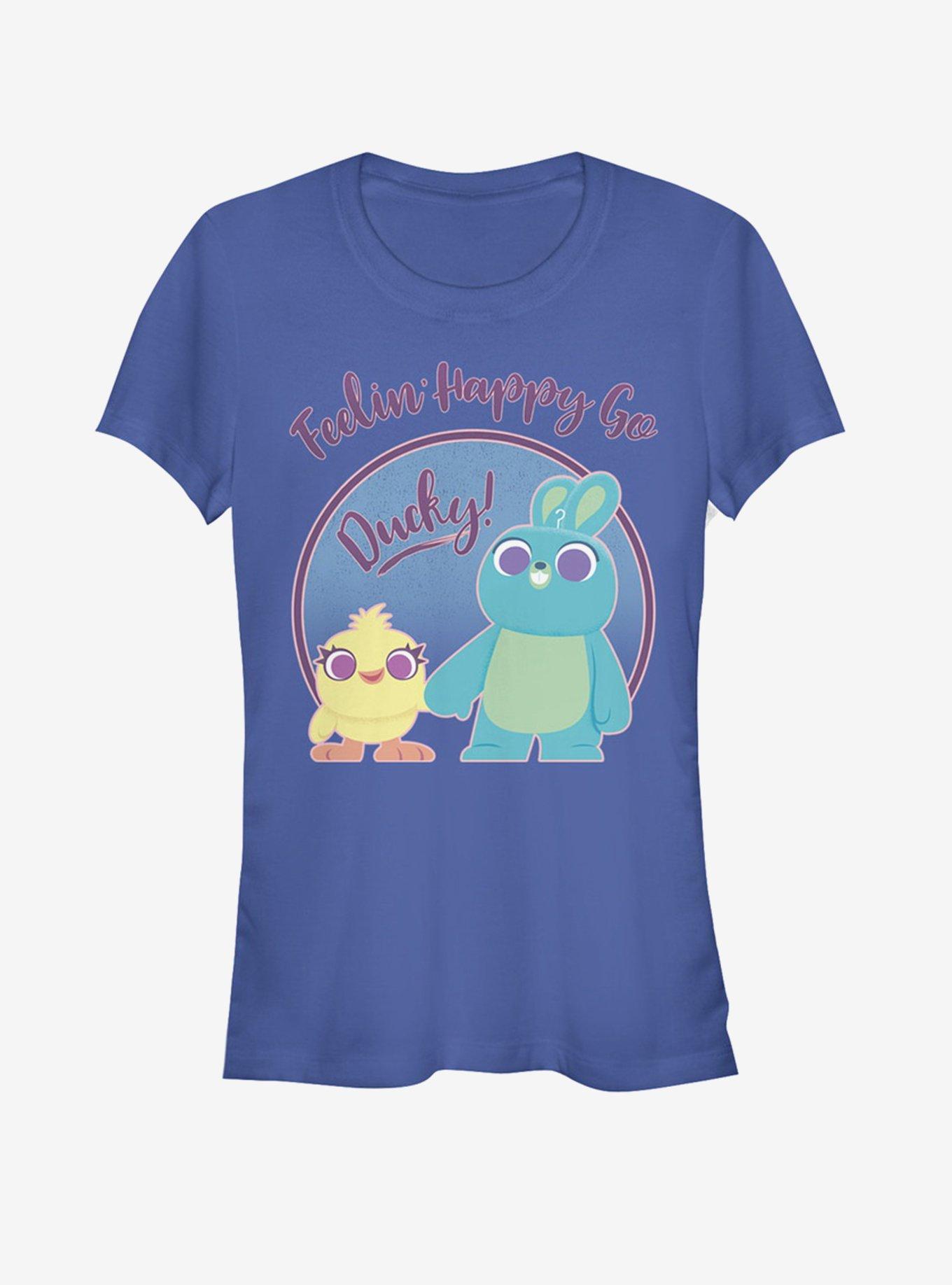 Feelin' happy go lucky? Sorta, but more like feelin' happy go DUCKY! This fitted royal blue tee features Ducky and Bunny from Toy Story 4 lookin' perfect in pastel.