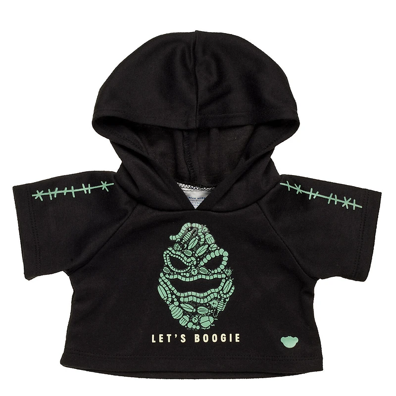 Ready to boogie? Dress any furry friend in this cool Disney Tim Burton’s The Nightmare Before Christmas hoodie for stuffed animals! The black and green hoodie features an Oogie Boogie graphic with "Let's Boogie" written below.