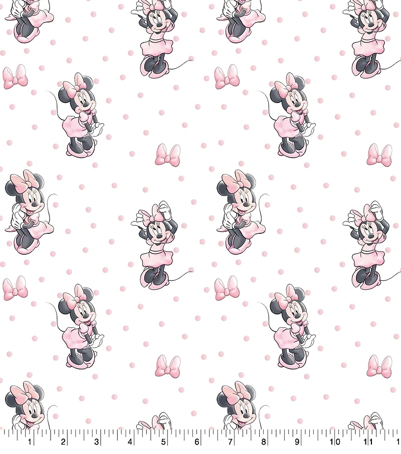 This soft, cotton fabric is perfect for quilting, crafting, and other sewing projects.Pattern: Minnie Mouse pink bows and dotsContents: 100% cottonWidth: 43''/44''Horizontal repeat: 6.3''Vertical repeat: 6.3''Maximum cut length: 8 yd.