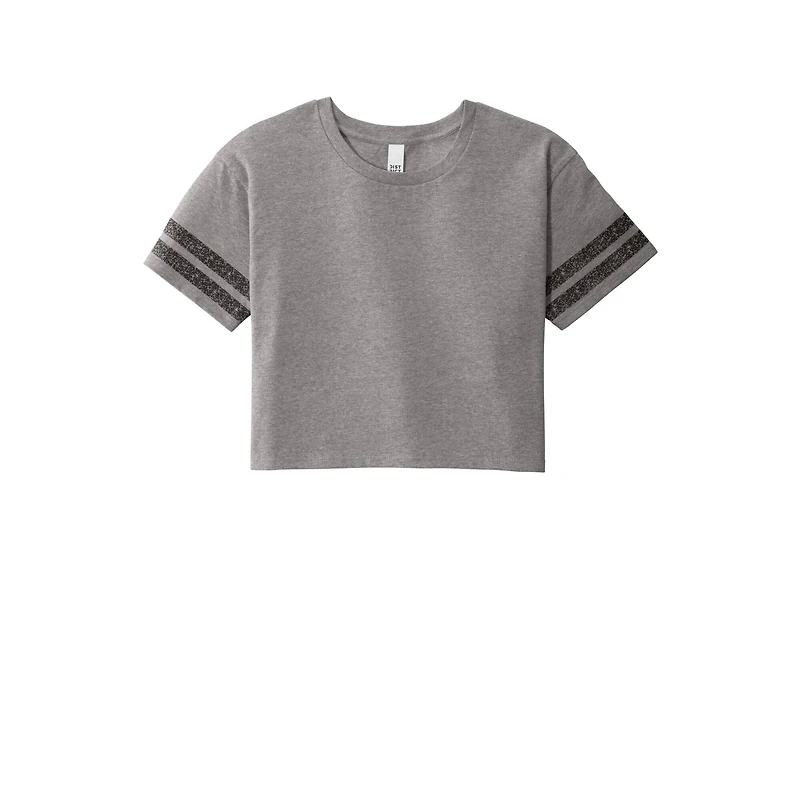 Score a relaxed, throwback look in this crop tee. Details:Available in multiple colors and sizes4.5-ounce, 60/40 combed ring spun cotton/poly, 32 singles1x1 rib knit neckTear-away labelDrop shoulderDistressed printed stripes on sleevesShoulder to shoulder tapingModest crop