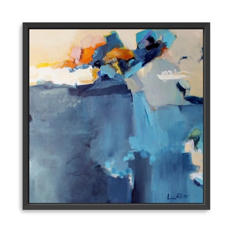 Update your gallery wall with a modern, abstract look using this Dizzy at the Edge Framed Canvas Art Print. You'll love how the rich blue tones add a pop of color to your space. Framed print measures 30L x 1.75W x 30H in. Giclee printed on stretched, archival-grade canvas Black wood frame around wrapped canvas Abstract subject Hues of blue, beige, orange, and ivory Weight: 12.7 lbs. Hangs from back-mounted hardware Care: Dust with a soft, dry cloth. This item is available at Kirklands.com only, not available in stores. Please note: this item cannot be shipped to APO/FPO addresses.