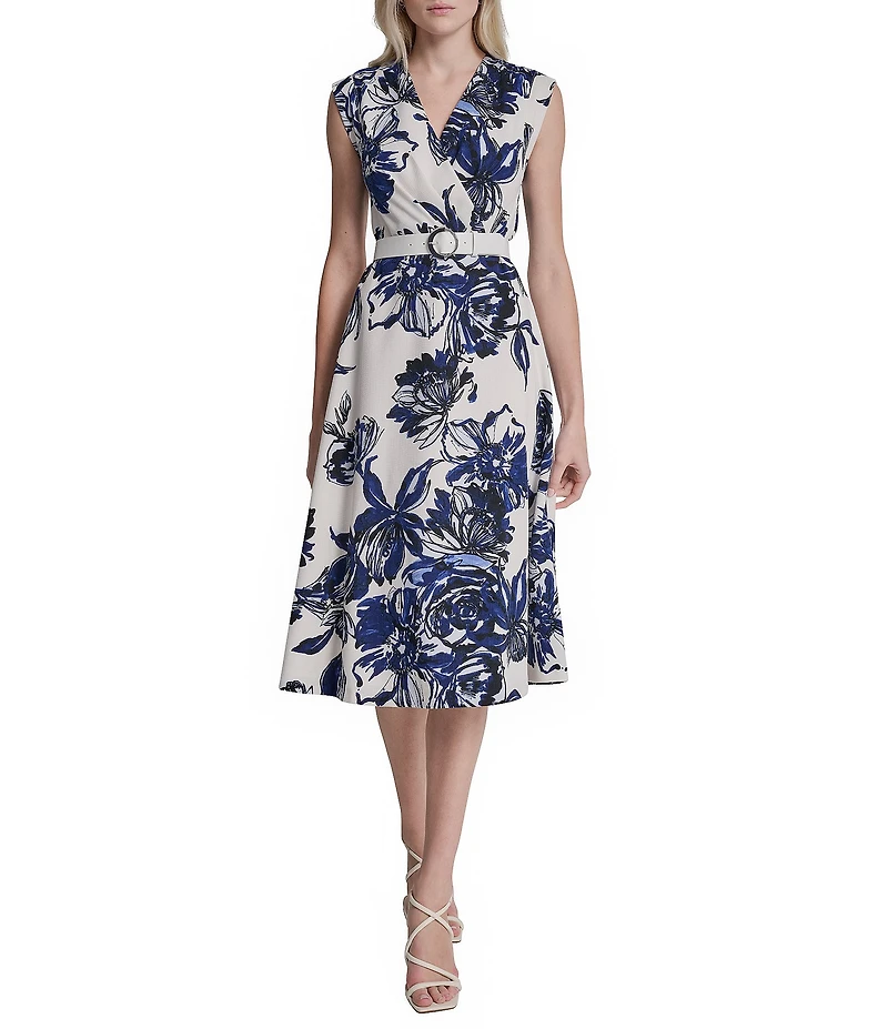 DKNY by Donna Karan Cotton Button Front Belted Midi Shirtdress
