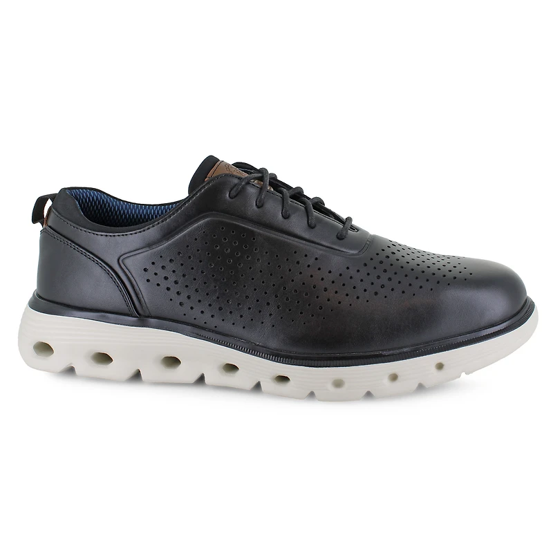 The Dockers Ferguson is the essential oxford handsome and the perfect addition to any closet. Crafted with a smooth synthetic leather upper, this dress shoe features perforations throughout for added style and breathability. Pairing well with jeans, khakis, or slacks, and refine your look without sacrificing comfort with a cushioned Supreme Comfort Pro footbed for lasting comfort and support. The lightweight Active Rebound outsole provides shock absorption, while a durable rubber outsole keeps you steady.