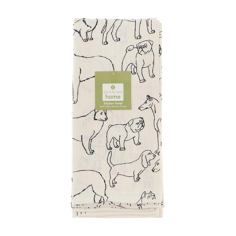 Dog Printed 100% Cotton High-Absorbent Kitchen Towel, 2 pk, 18x28 inDog Printed 100% Cotton High-Absorbent Kitchen Towel, 2 pk, 18x28 in