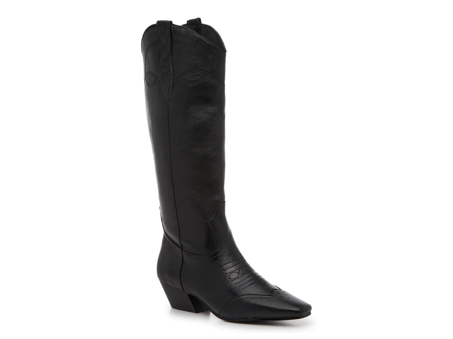 Add a country twist to any ensemble by pairing your looks with the Dollie cowboy boots from Steve Madden. These Western-inspired kicks feature a timeless silhouette, crafted with a high-quality leather material, a wingtip design along the square toe, and intricate stitching.