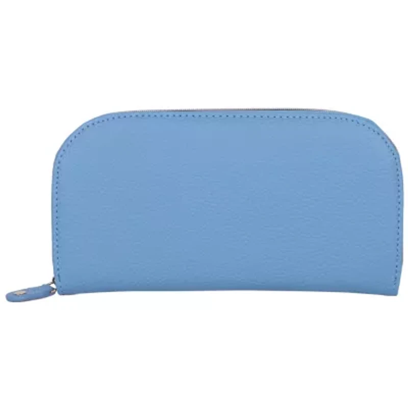 The Julia Buxton Dome Wallet features sleek vegan leather, gold hardware, and RFID-blocking lining for secure style. It includes a zippered main compartment, eight card slots, two slip pockets, and an inner zip pocket to keep your essentials neatly organized. No 8 Credit Card Slots,2 Slip Pockets, 1 inner zipper pocket, 1, Yes China Imported Product Specifications 5''W x 7''H x 1''D Material & Care Vegan leather Clean with a soft cloth.