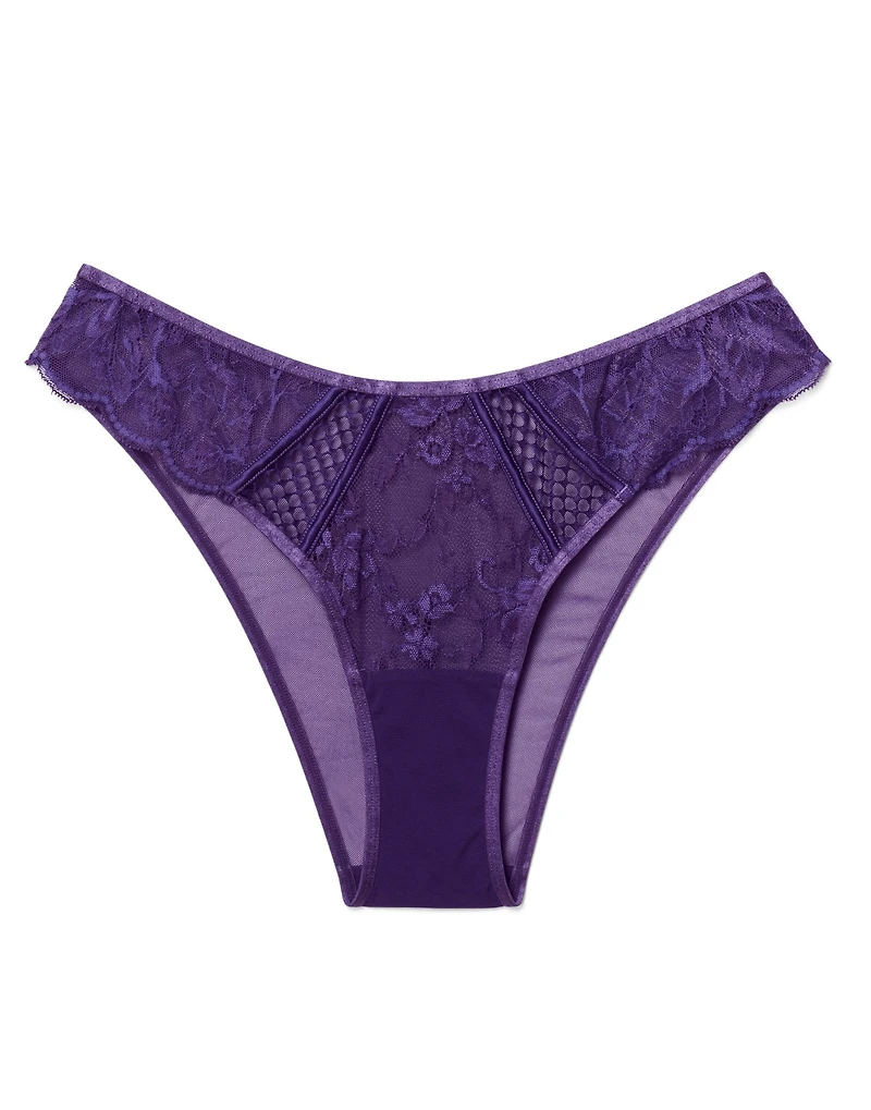 The Dominika Cheeky Dark Purple lace cheeky is an irresistible blend of allure and comfort. This style features a Cheeky Panty, Pull on design, and regular Rise for a flattering fit. Elevate your everyday look with this sophisticated piece. (Available in sizes XS-XL.)