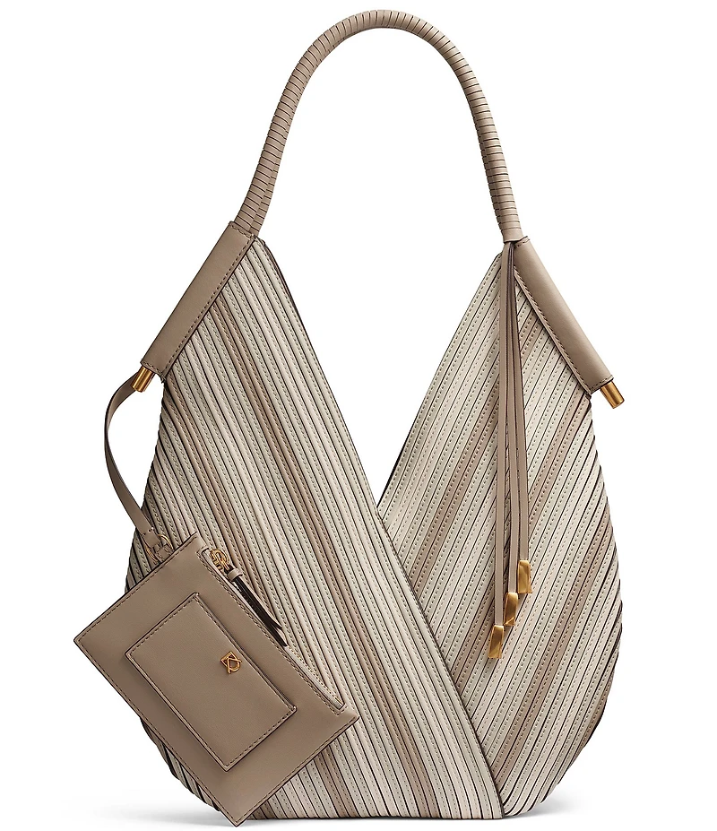 From Donna Karan, this shoulder bag features: Genuine leather Magnetic snap closure Gold tone hardware Interior removeable pouch pocket Approx. 12" handle drop Approx. 13" L x 14" H x 2" W Spot clean Imported.