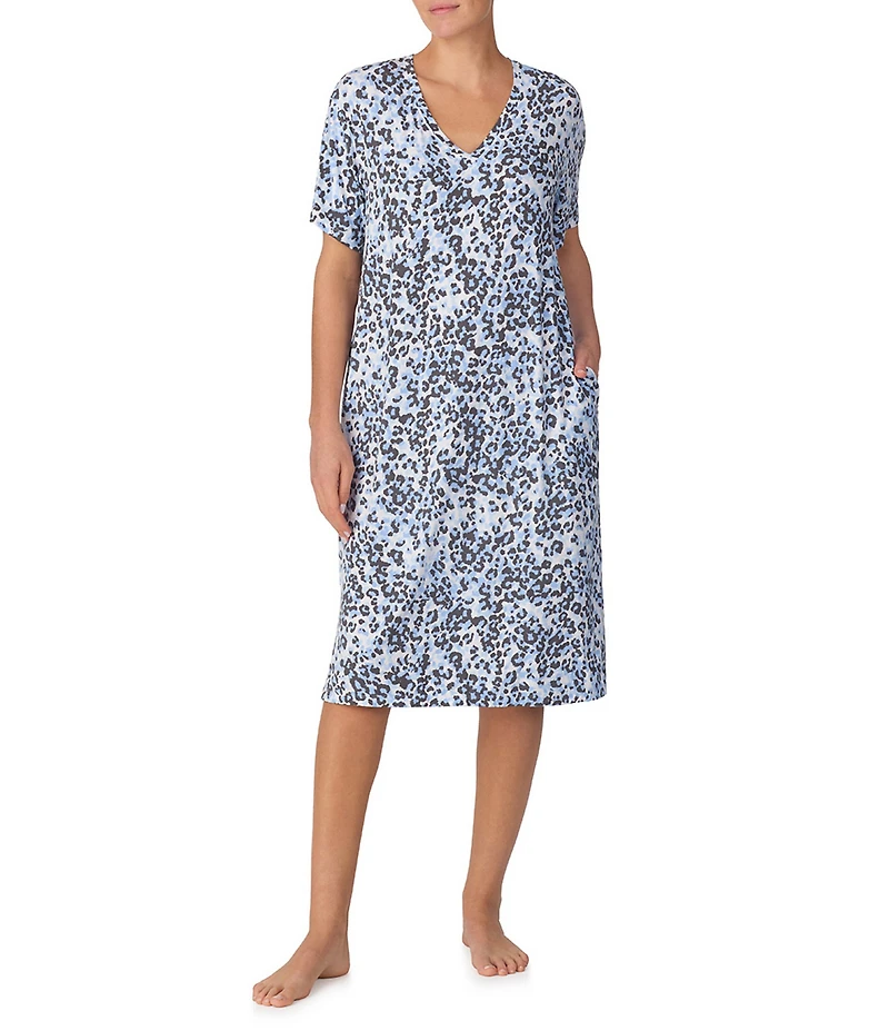 Donna Karan DKNY by Donna Karan Animal Print Short Sleeve V-Neck Jersey Knit Sleepshirt