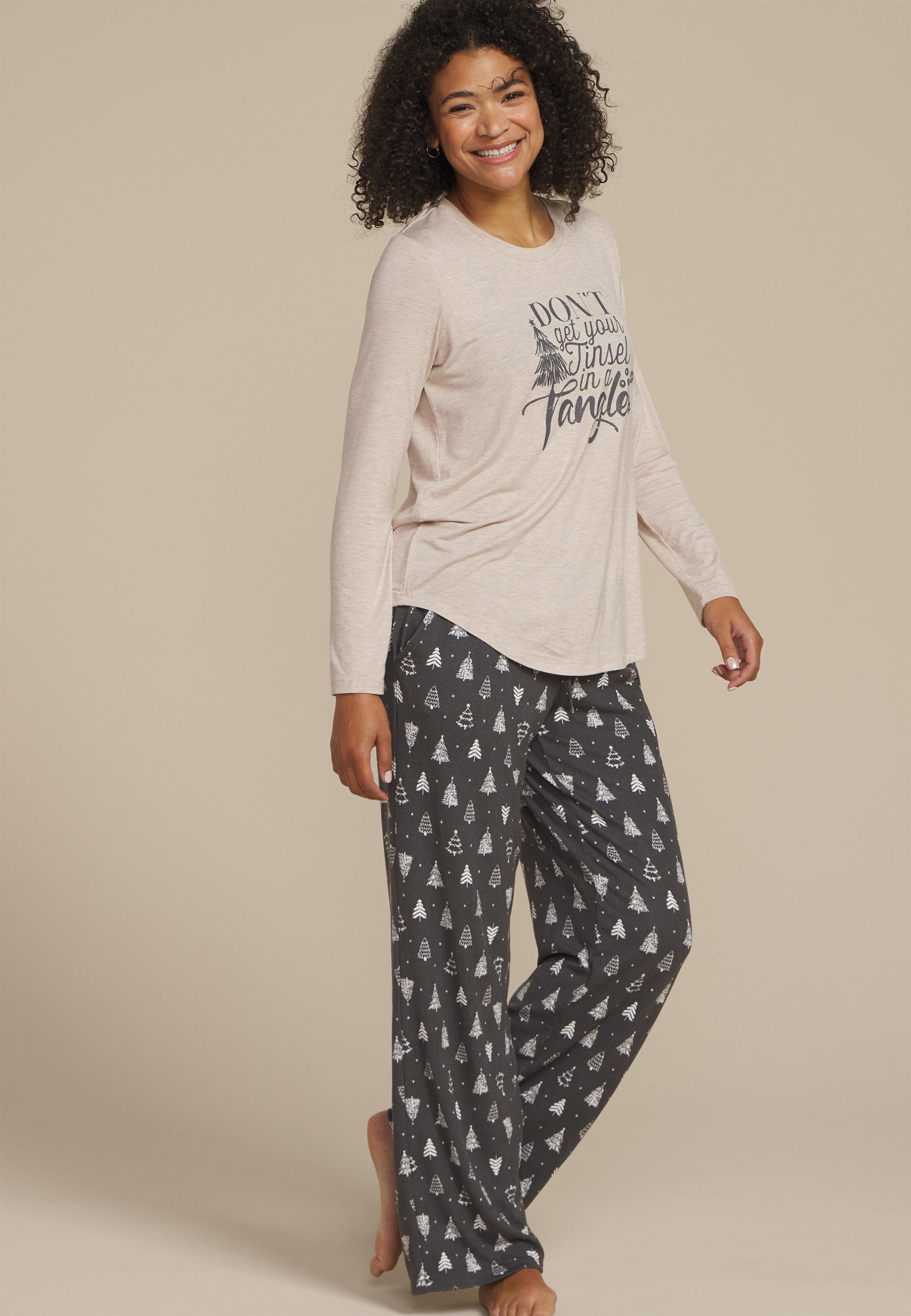 Dont Get Your Tinsel In A Tangle Graphic Tee And Wide Leg Pajama Set