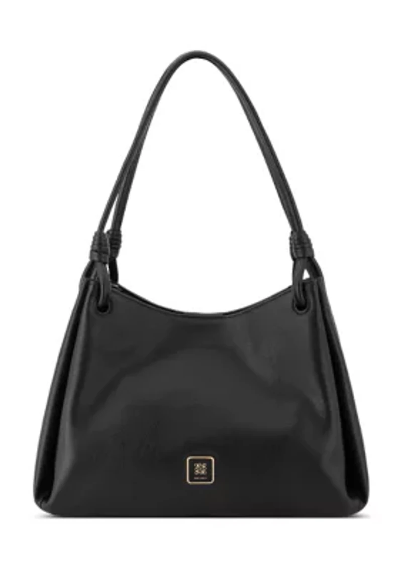 This Nine West shoulder bag features multiple compartments and pockets, both inside and out, to keep your essentials organized. The elegant design includes hardware and strap details, adding a touch of sophistication. With a comfortable shoulder strap and a secure zip closure, this bag is perfect for everyday use. Shoulder strap Interior: slip and zipper pockets Imported Product Specifications 14" x 7" x 9" Material & Care Faux leather Wipe clean