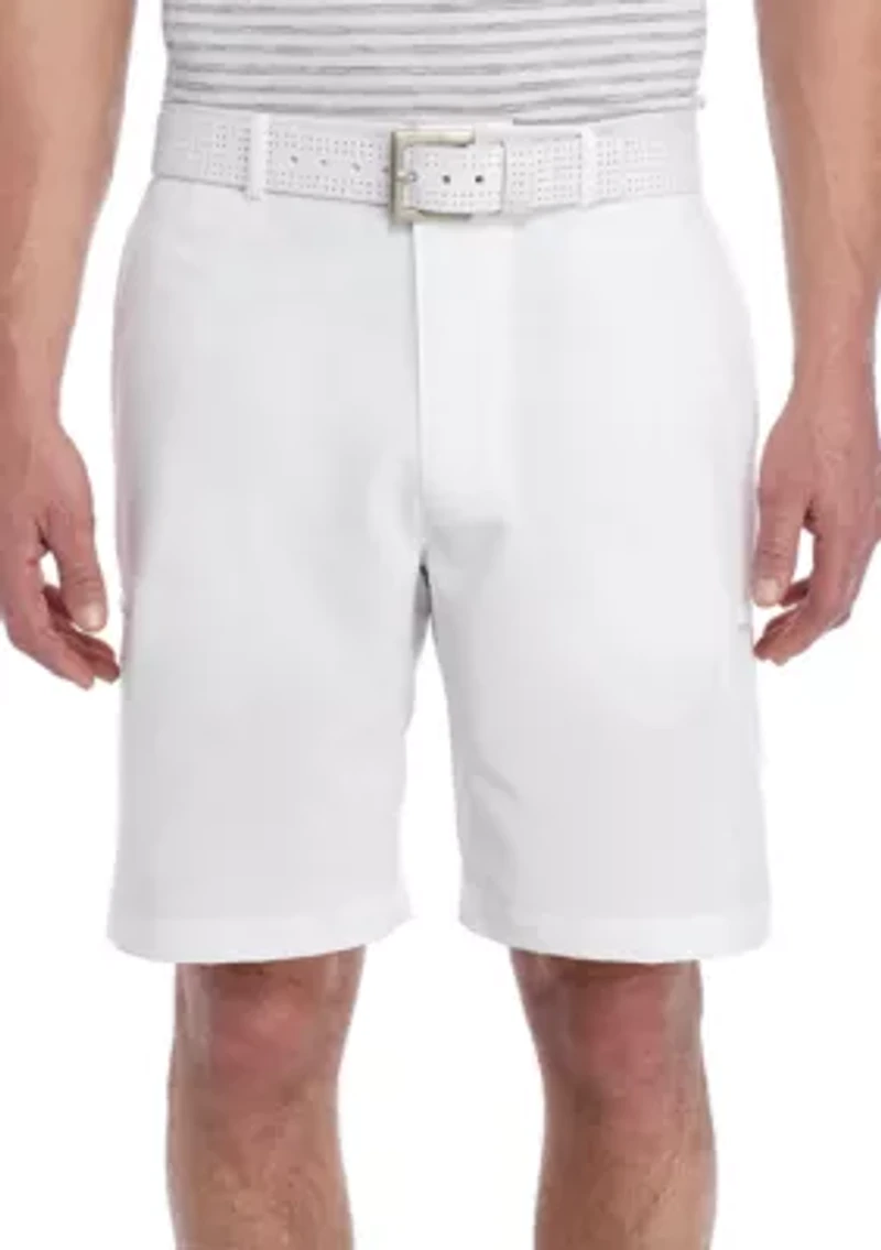 Double pockets add depth to these classic cargo shorts. Ideal for off-duty adventures out fishing or hiking up the highest mountain, this pair is perfect for stepping out onto any scene. Polyester/Elastane Stretch Fabric Stretch Active Waist with Gripper UPF Sun Protection Moisture Wicking Easy Care Zip closure, button closure, belt loops Double pockets Belk Exclusive Material & Care Polyester, elastane Machine washable